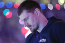 [流言板]有趣!东契奇在球队合影日上头戴印有克勒贝尔名字的贴纸